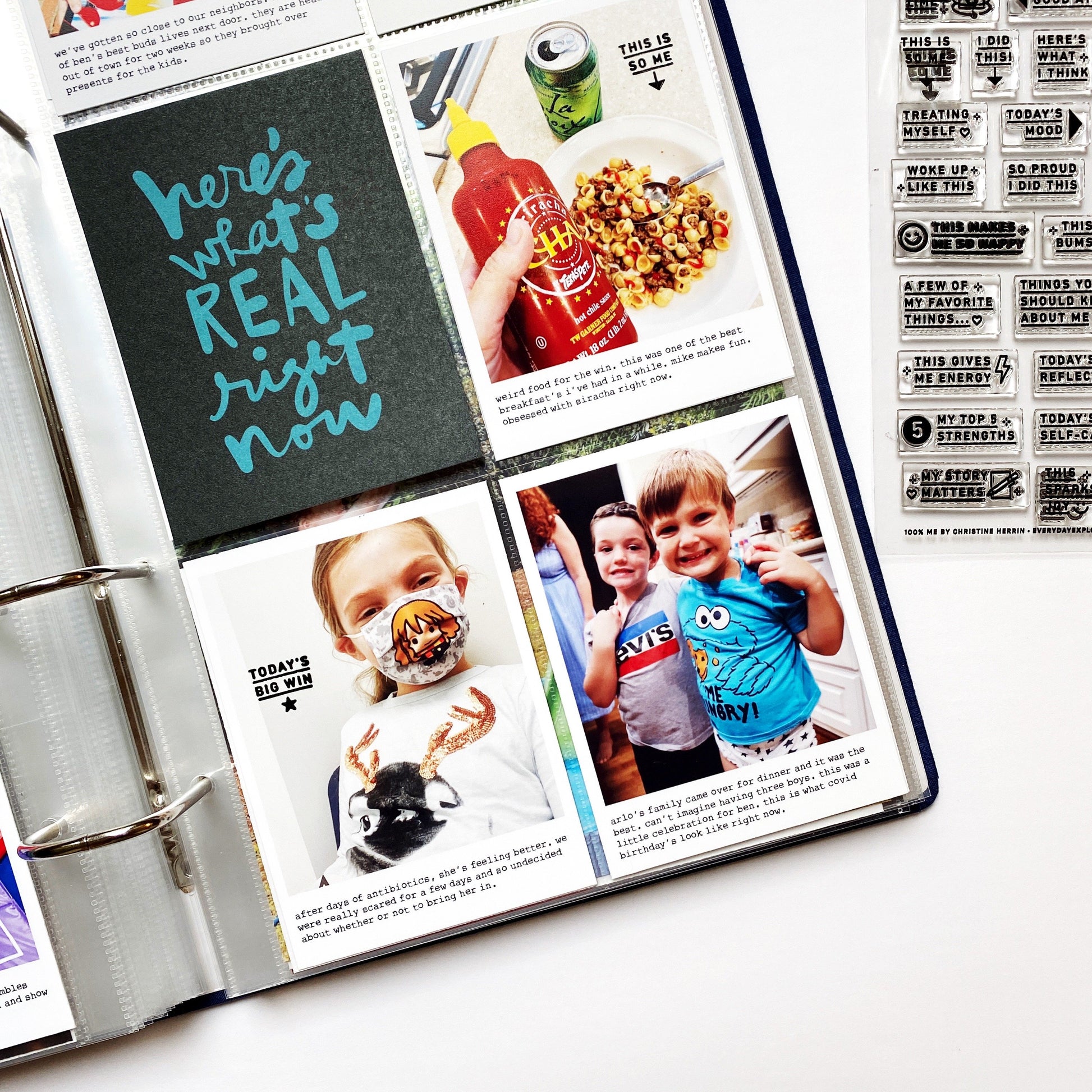 Introducing the Prompt Series! Let this stamp set help you document yourself when you're not sure where to start — make an All About Me album, journal about yourself, document your favorites and wins! These prompts include: