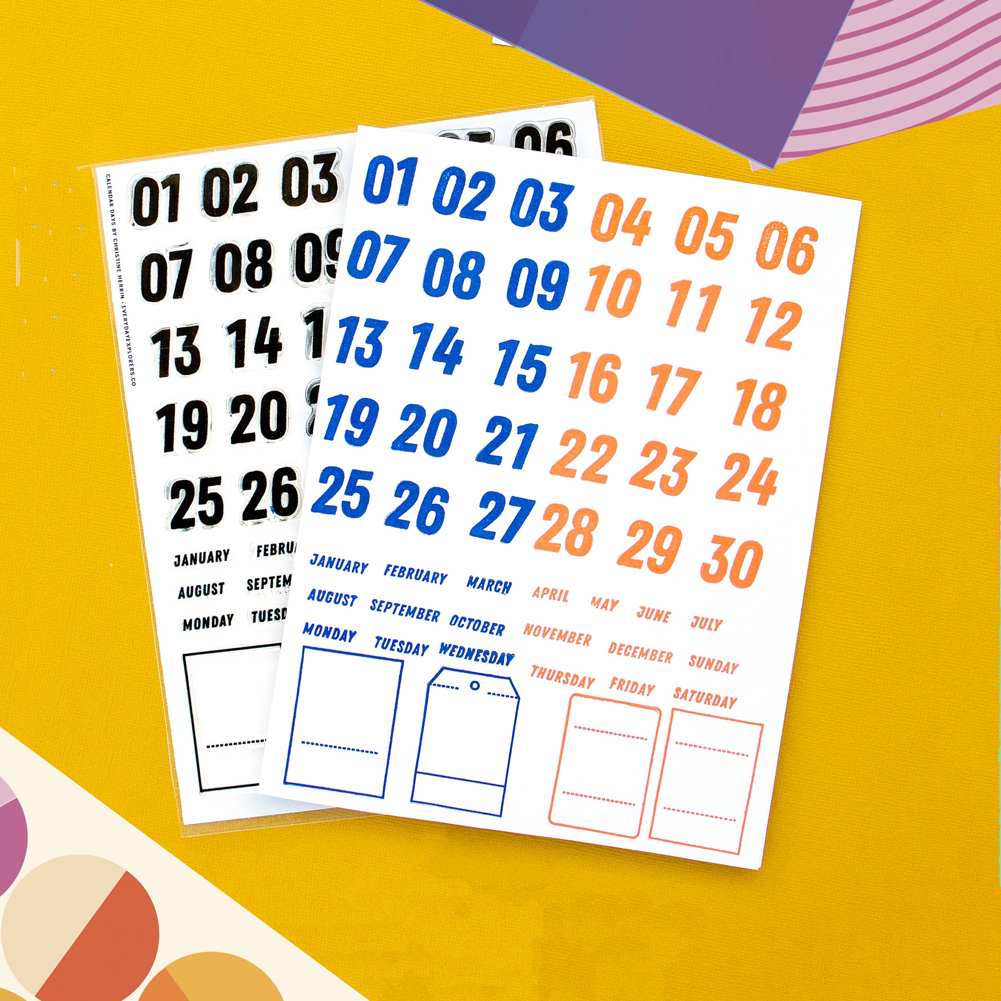 This stamp set's got all the dates, days and months, and even comes with 4 tag designs you can use to frame them with! Mix and match or use each stamp on their own - you'll surely make a statement in your projects however you choose to use them! ;)