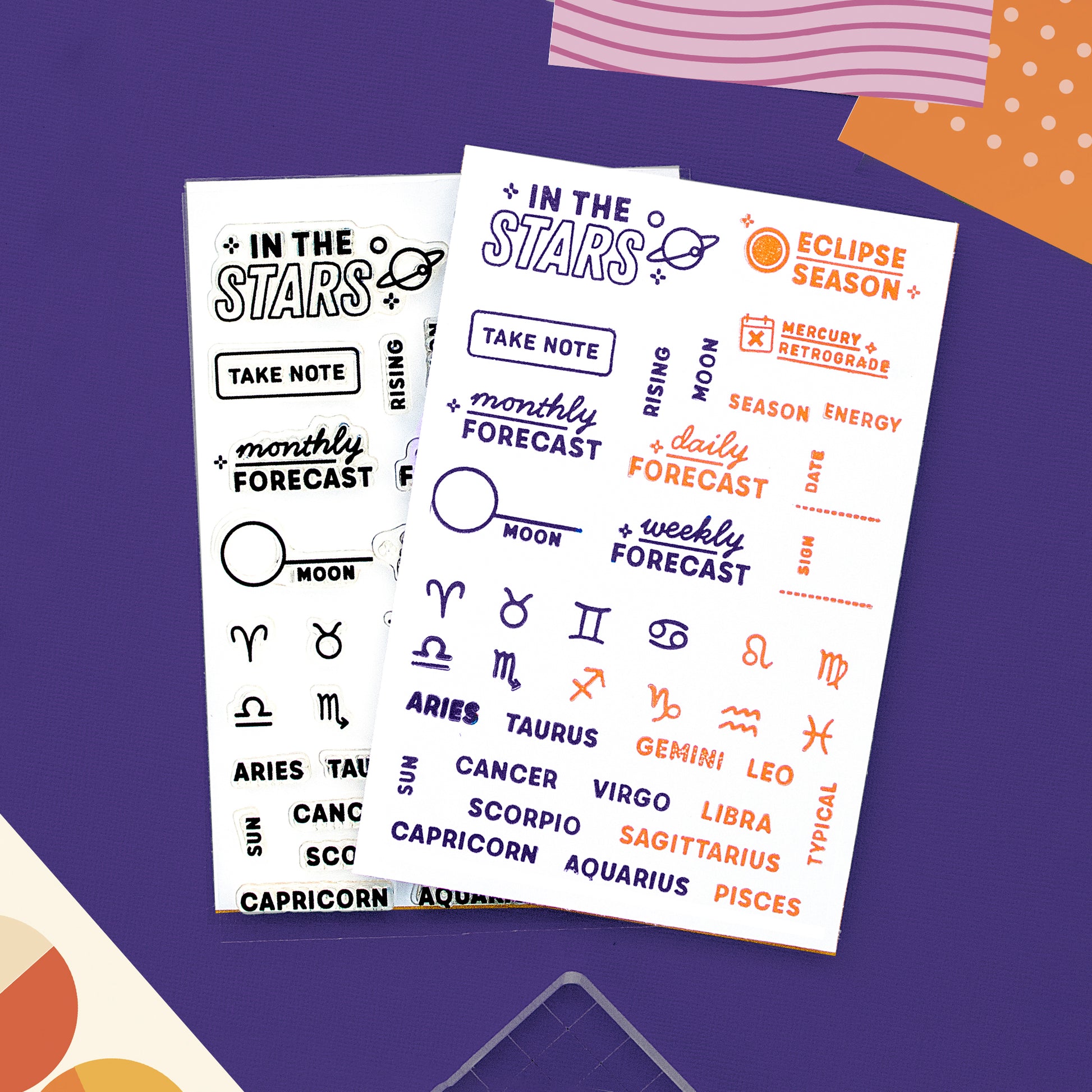 Do you keep track of lunar phases in your bullet journals, or jot down your monthly forecasts and important transits? This stamp set is for all those into astrology and love to see how the planets affect them each month, week and day!