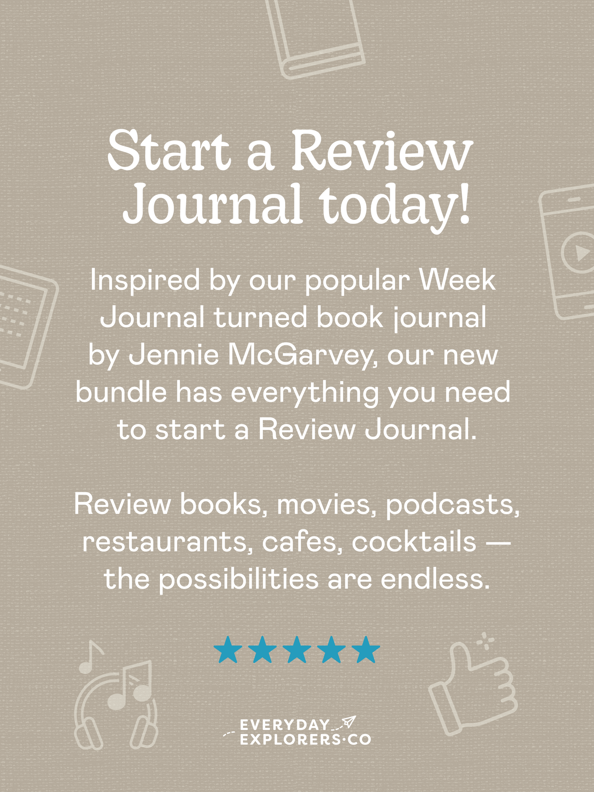 This journal bundle includes 1 A5 Journal (with an all new layout inspired by Jennie McGarvey's book journal!) and a 3x4 clear stamp set designed to fit each section. Start a Review Journal of your favorite books, meals, coffee shops, you name it! Stamp set is a bundle exclusive and will not be sold separately.