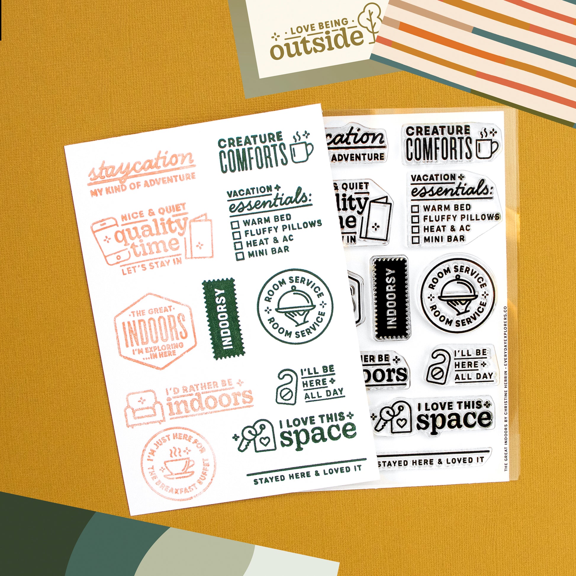If staying inside, room service, and hotels are your idea of a great vacation, then you're going to love this stamp set! Use this one to record what inside spots you're visiting or your favorite spots to stay.